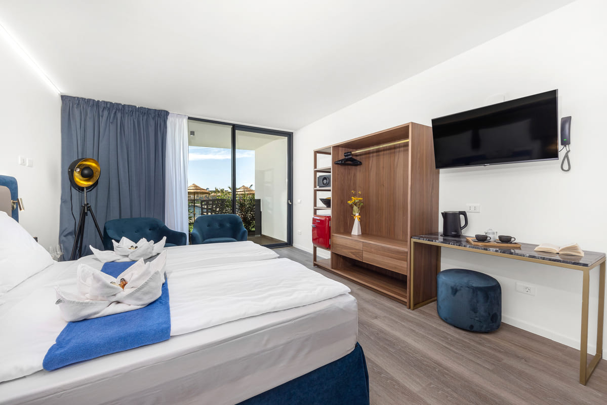 Some rooms are on the pool side, offering sunny mornings and peaceful evenings. Bed linen is included and baby cots are available on request. Whether you’re travelling as a couple, with friends or as a family, you’ll always find the perfect option for your holiday.